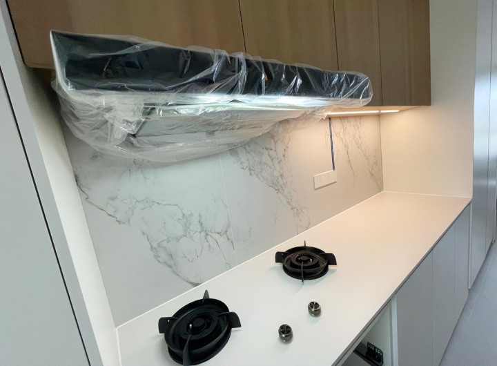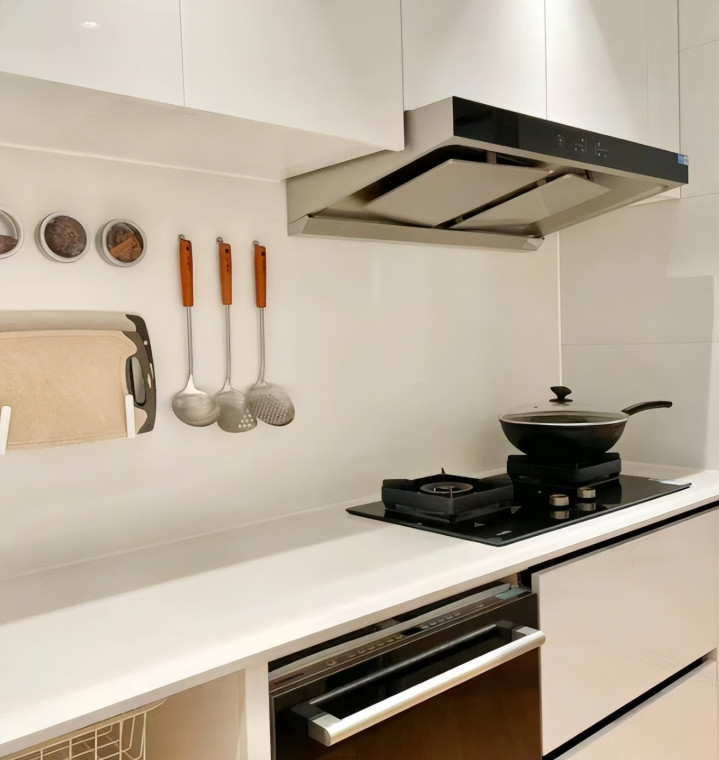 炒菜区的油渍问题一直是厨房清洁的用功。好多家庭会遴荐瓷砖,但瓷砖有舛误,油污老是藏在缝里,难算帐,致使容易发霉。